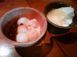 白玉だんご(あずきときな粉)、パイナップルムース。